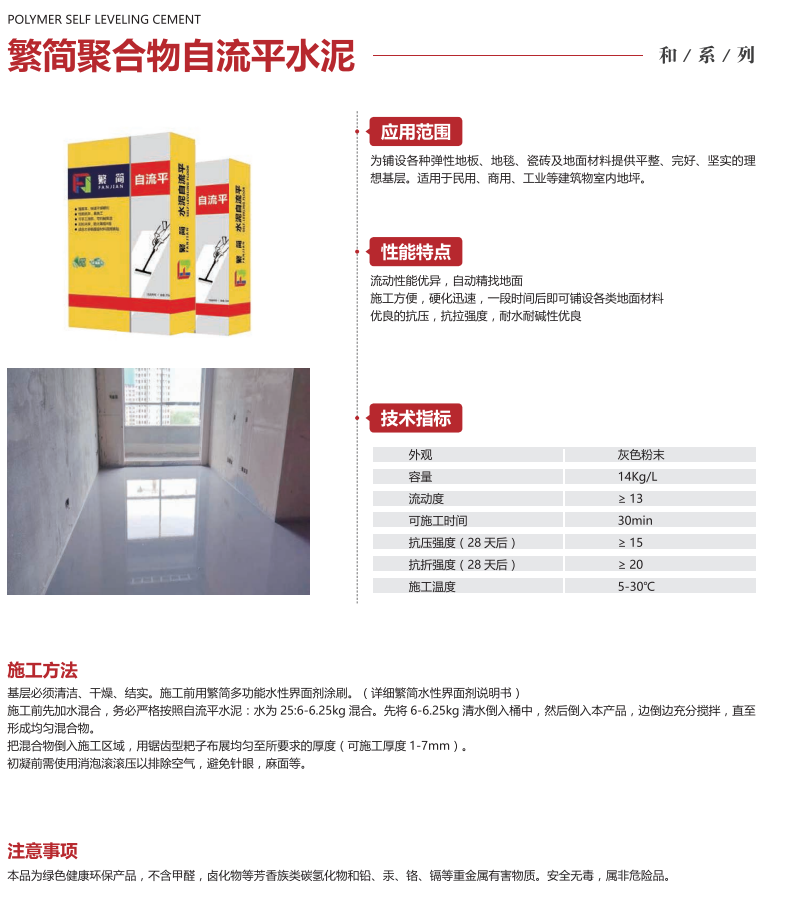 为铺设各种弹性地板、地毯、瓷砖及地面材料提供平整、完好、实的理想基层。适用于民用、商用、工业等建筑物室内地坪。